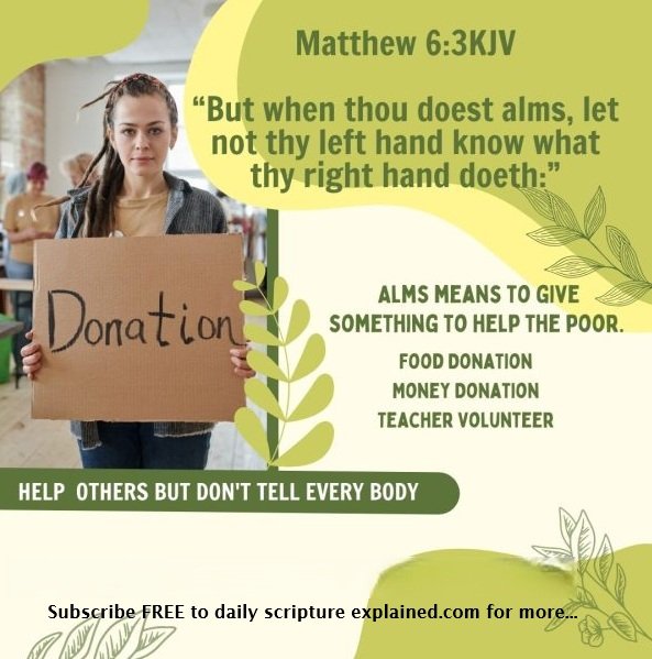 Note: Alms means to give something to help the poor. It could be money, time, food, housing, loan, etc. Jesus is saying do not boast for in your boasting you have received your reward.