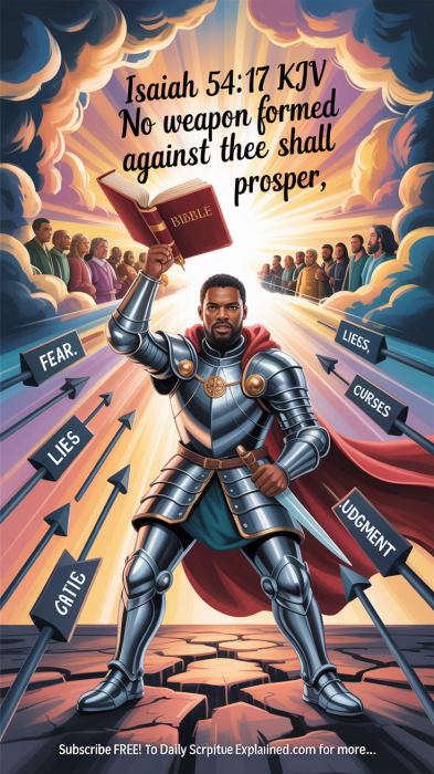 Keywords: evil people, curses, aliens, Isaiah 54:17 meaning, no weapon formed against me, Bible promises of protection, spiritual warfare scriptures, God’s shield of protection, overcoming curses, faith over fear, victory in Jesus, KJV daily devotion, God’s covering, canceling evil plans, truth of God’s word, power of the blood, Christian encouragement, spiritual growth, prayer for protection, divine victory, resisting the devil, strength in God’s promises, heritage of the servants of the Lord.